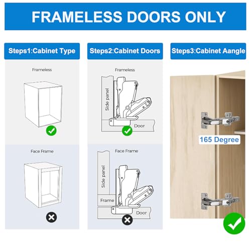 【FRAMELESS DOORS ONLY】: Suitable only for frameless doors and not compatible with inset doors