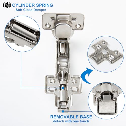 【Quiet Soft Close 】: The 165 degree soft close hinge have a mechanism that allows the cabinet door to gently close before completely closing. These cabinet door hinges are made with built-in dampers that help doors close more safely and quietly to protect hands and fingers.