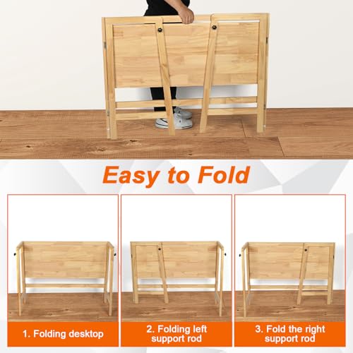 Space-Saving:Crafted from premium solid wood, this 39″ folding desk collapses to 1/3 its size in seconds. Perfect for apartments, dorm rooms, or home offices where floor space is limited. The hinge system ensures smooth folding without wobbling