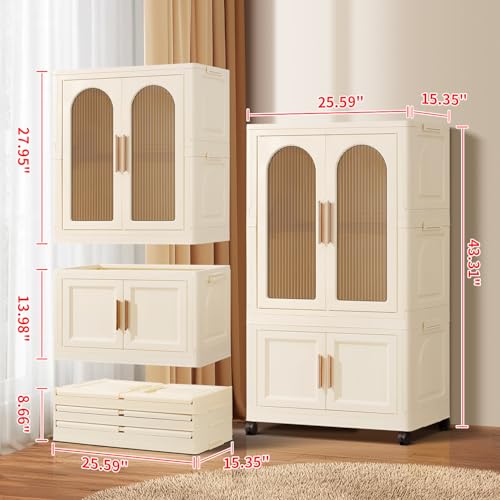 Portable And Durable: Closet for kids is made of plastic(PP+ABS). The buckles on the side can be buckled more firmly when stacking clothes shelving, and the portable closet will not be easily tipped and slipped. Transparent visible double doors, comfortable handle and wheel design make the kids dress up rack easier to move and clean in the bedroom, creating a modern and stylish children’s room, daughters room