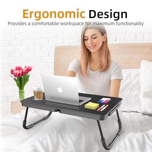 EASY TO STORE AND PORTABLE: With its lightweight design, this foldable laptop desk can be easily carried from room to room or taken on outdoor trips. After use, fold it up and store it next to the sofa or under the bed without taking up much space.