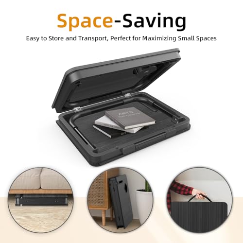 MULTI-FUNCTIONAL: This laptop table is designed for versatility.Ideal for various activities like working, studying, reading, eating, or watching movies. Perfect for use on the bed, sofa, floor, balcony, or even outdoors. Can be used as a laptop desk, dining tray, mini writing desk, or picnic table.