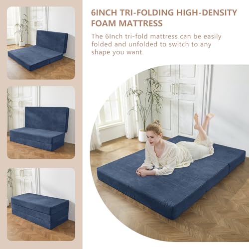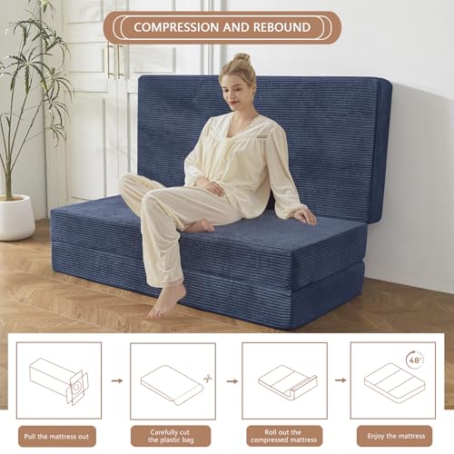 Certified Safe Sleep: This tri-fold mattress is CertiPUR-US certified, ensuring that it is free of harmful chemicals. The Corduroy material used in its construction is not only cozy and soft, but also safe for you and your loved ones