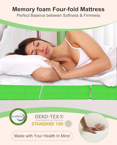 【PORTABLE】The 4” portable foam bed for sleep is easy to fold, store and comes with a storage bag to carry it anywhere,The tri-fold mattress can be easily stored in a closet or under the bed or the corner of the car when folded.