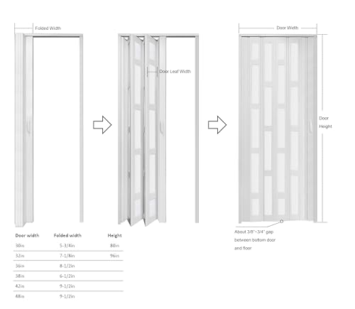 The accordion door panel thickness is 7/16in(12mm), and the frosted acrylic thickness is 0.06in(1.5mm), with a strong load-bearing capacity.