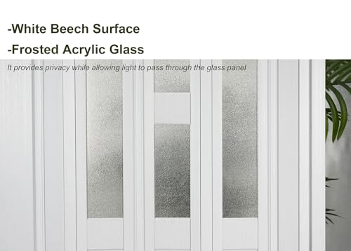 Folding door is made of white beech color PVC+frosted acrylic, the surface is smooth and waterproof.And the frosted acrylic blocks the view from the outside to ensure privacy.