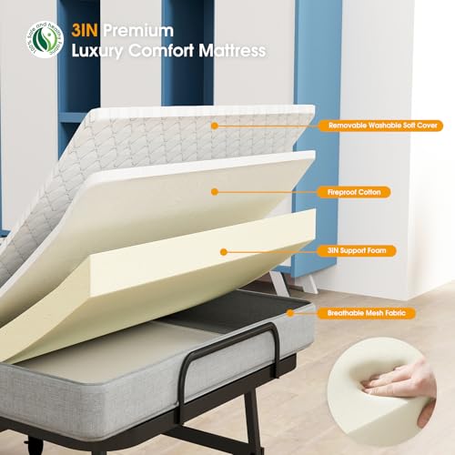 Comfort Memory Foam Mattress Rollaway beds equipped with a memory foam mattress to ensure you sleep soundly. It consists of a soft and breathable polyester cover and highly elastic memory foam. A white non-slip pad underneath prevents the mattress from sliding. The cover is removable and washable