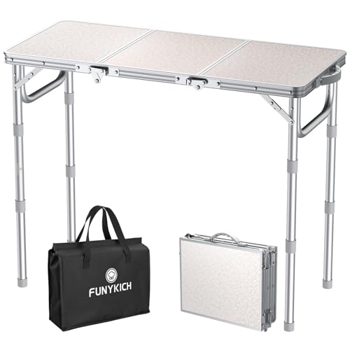 【3 Adjustable Heights & Heightening Design】FUNYKICH small folding table can be adjusted to 3 heights as 10.3”/26cm in low, 19″/48cm in middle and 27.5″/70cm in high to meet your needs for different occasions whether you are standing or sitting