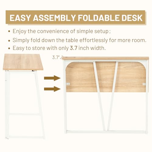 Easy folding mechanism: The folding writing desk is designed with a simple and efficient folding mechanism allowing you to effortlessly fold and unfold the desk as needed, making it easy to store or transport when not in use. Whether you need to create additional space in your home office or take the desk with you on the go, the folding mechanism provides convenience and flexibility.