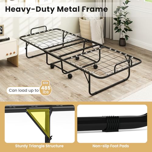 Heavy-Duty Metal Frame: Experience ultimate stability and support with the folding bed, engineered with a heavy-duty metal frame that can load up to 485 lbs. The sturdy triangle structure and non-slip foot pads ensure safety and steadiness, providing peace of mind while you sleep.