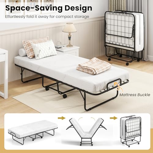 Space-Saving Design: The roll away bed offers a practical space-saving design, ideal for any home with limited space. Effortlessly fold it away using the convenient mattress buckle for compact storage, making it a convenient option for creating a temporary guest room.