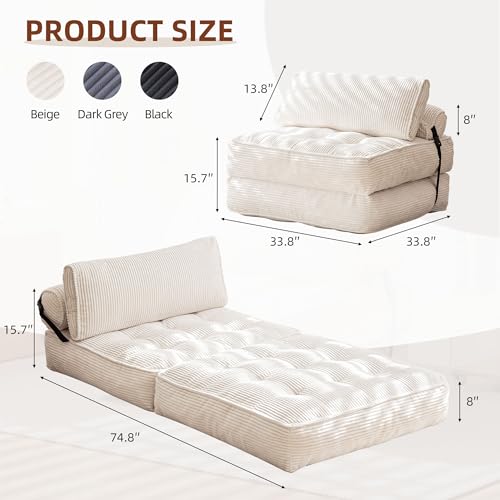 ใ๐๐ฎ๐ฅ๐ข๐ญ๐ฉ๐ฎ๐ซ๐ฉ๐จ๐ฌ๐ & ๐๐ฉ๐๐๐ ๐๐๐ฏ๐๐ซใThis convertible chair bed measures ๐๐.๐”๐ฑ ๐๐.๐ “, with a cushion thickness of ๐ “. When not in use, it can be converted into a ๐๐.๐”๐ฑ ๐๐.๐” lazy sofa and placed in the corner, making full use of space. Suitable for various scenarios, such as temporary rest areas in offices, children’s game mats, guest rooms, game rooms, dormitories, etc