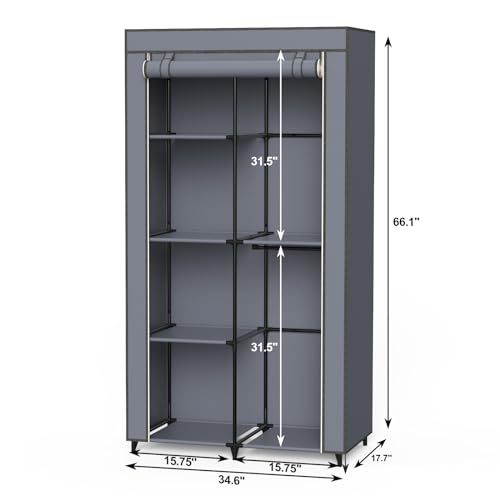 STRENGTH TO SUPPORT: With thickened 16mm dia. steel tubes and high quality non-woven fabric, this gray portable closet provides strong support for your daily storage. One hanging rail can holds up to 28 lb and each shelf 6.6 lb.