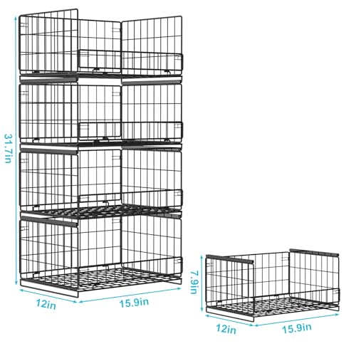 Multi-Functional: The 4-tier stackable closet organizer bins are perfect for storing clothes, snacks, drinks, and more. Ideal for the bedroom, kitchen, living room, office, or study areas. Keep your items neat and organized, away from the mess