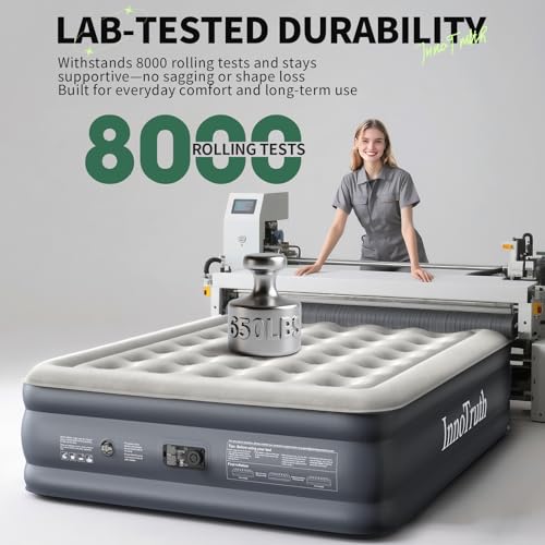 ๐๐ง๐ซ๐ข๐ฏ๐๐ฅ๐๐ ๐๐จ๐ฆ๐๐จ๐ซ๐ญ: Enjoy quick, firm support with the InnoTruth air mattress, featuring a powerful 110V pump that inflates or deflates in just 3 minutes. The Smart Air Coil System conforms to your body’s natural curves, evenly distrubuting weight to minimize sinking and relieve pressure on your back