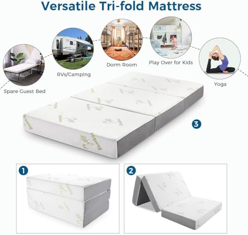 Comfort & Support: Inofia 6-inch tri folding mattress uses a combination of gel memory foam and support foam construction to provide lasting comfort and prevent sagging, relieving body pressure points for a full night of restful sleep.