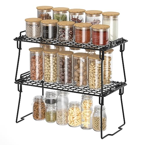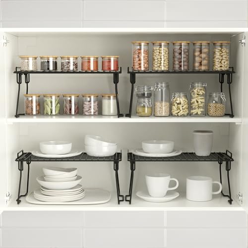 [Stackable]: Set of 2 cabinet shelves where you can stack one on top of another. It can be used as storage organizers in kitchen, cabinet, pantry, cupboard anywhere you can place.