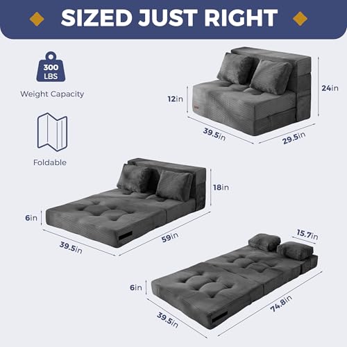 Convertible 4 in 1 Design: The folding sofa bed easily converts into a floor sofa, chaise, recliner ottoman and bed, which can be easily and conveniently operated with a simple pull. Whether it’s for personal relaxation, reading, playing, gaming, watching a film, or for guests who need to spend the night at home, it’s easy to meet your needs