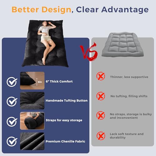 6″ Thick Floor Mattress: Stuffed with high-quality shredded foam that balances plush comfort with lasting support. This japanese floor mattress is ideal for enjoying a peaceful night’s sleep or relaxing comfortably during the day