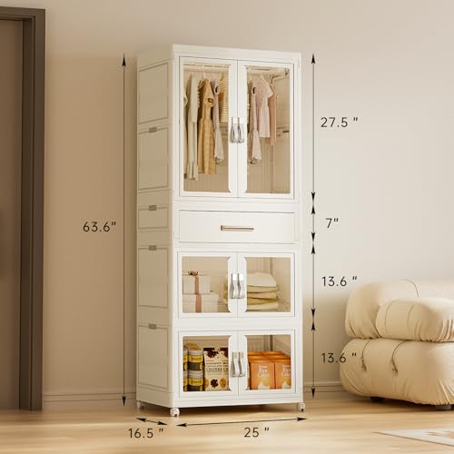 Maximize Storage Capacity: Large kid’s wardrobe expanded size:25*16.5*63.6″. The child closet has a hanging area, a drawer and two storage space, to meet your different storage needs. Clothes hanging area can be used to hang children’s clothes, skirt, but also can be placed quilts, socks, towels and blankets, drawers can be used for close-fitting clothing storage, two storage areas can also be used for baby living items, baby formula, toys, books, snacks and other storage.