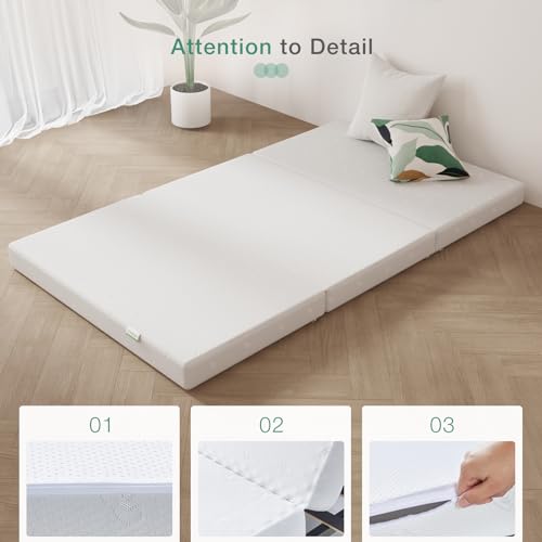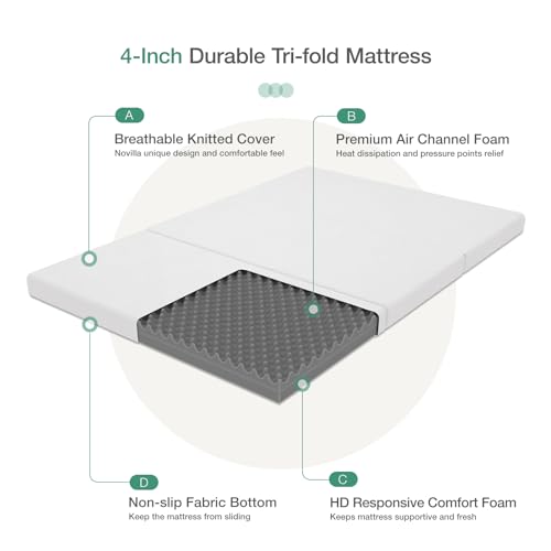 UPGRADE COMBINATION IMPROVES DURABILITY and STABILITY- This 4 inch folding mattress features 2-layer responsive comfort foam with higher density. The top layer is designed in a wave pattern to relieve pressure points on your body, while the extra about 3″ high-density foam is a base to keep the tri-folding mattress supportive and durable. The non-slip fabric on the bottom helps it stay in place securely.