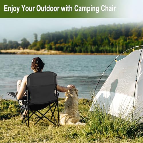 CONVENIENT STORAGE DESIGN: The folding camping chair comes with a mesh cup holder and a storage bag, making your drinks within reach and cooling down for your summer. The multifunctional storage bag can store phones, keys, magazines, etc., simplifying the storage of outdoor items.