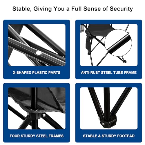 LIGHTWEIGHT AND SMALL IN SIZE: Imagine having a Transformers: unfold and fold in just a few seconds! The size of the camping folding chair is 20.50 “L x 20.50” W x 33.8 “H, weighing only 5 pounds. It is easy to carry and can support 225 pounds, making it perfect for hiking, camping, fishing, picnics, sports events, and more. Enjoy your outdoor life!