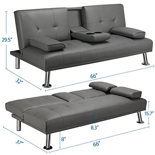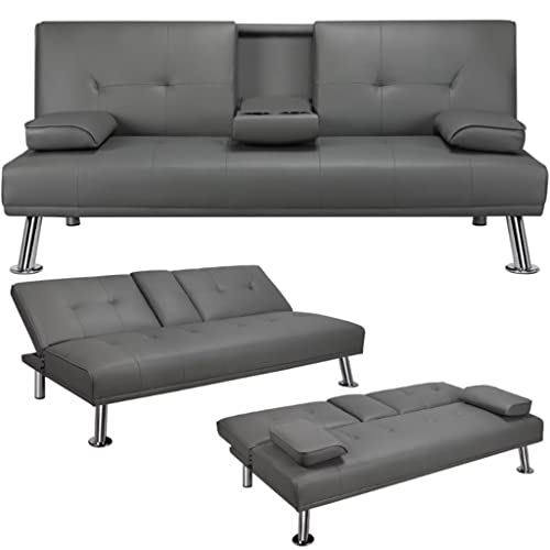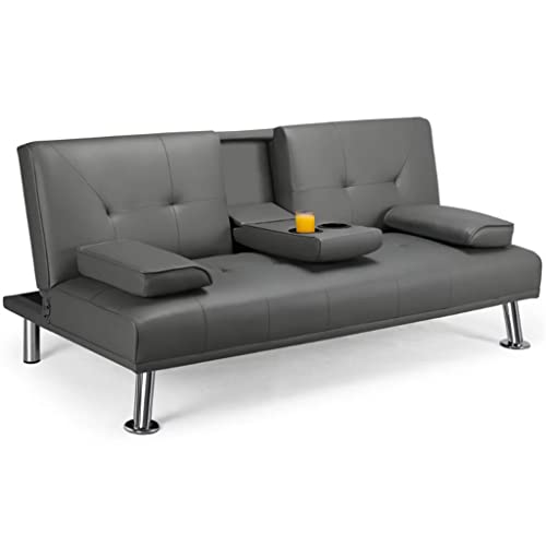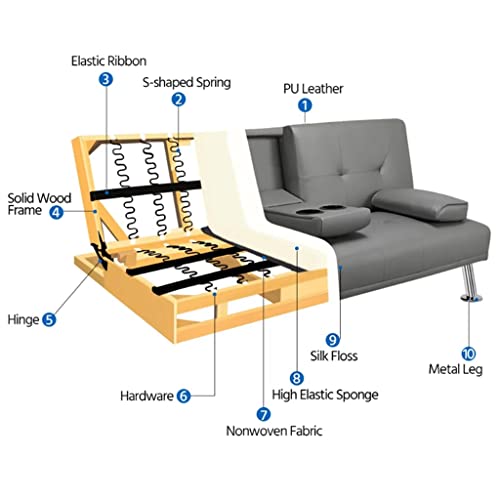 This futon is made of ergonomic materials and a foldable middle armrest design, which can be folded together with two cup holders, making it very comfortable.