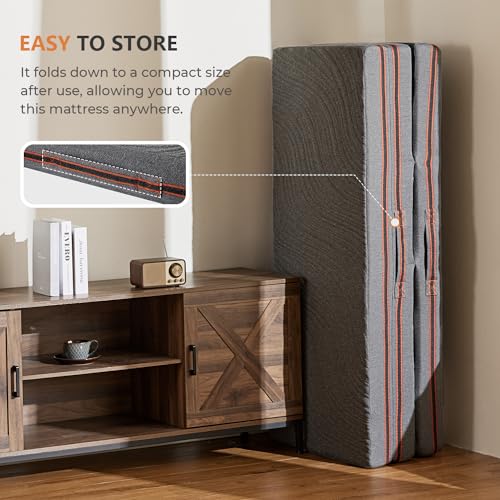 【Eco-friendly Fabric】The surface of the folding mattress is made of eco-friendly fabric layer, which is soft and skin-friendly, providing a gentle touch experience. With unique air knitting technology, it effectively increases air circulation.