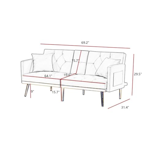 Durably crafted with velvet fabric and gold metal legs, this convertible futon sofa fuses comfort and that will last in your living space for years to come .