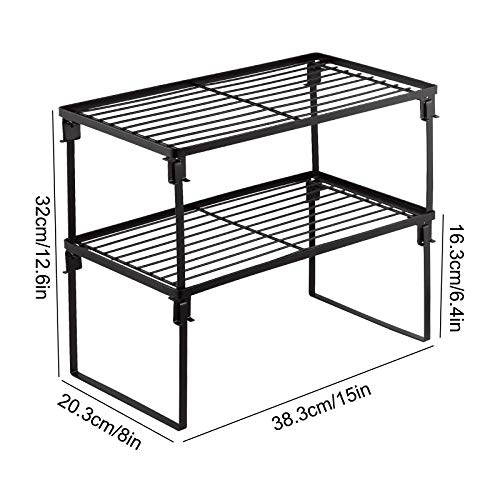 ✅【Foldable Design】These versatile shelves can be folded flat for easy storage. Overall two-tier dimensions: 12.8″ H x 15″ W x 8.2″ D. Tool-free assembly. Convenient to use. Easy to clean.