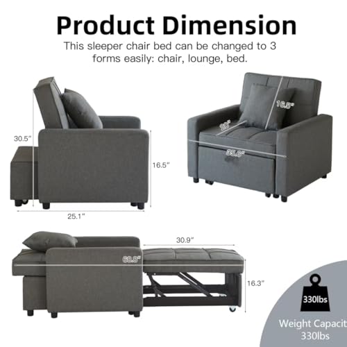 Convenient & Adaptable :This all-in-one chair bed comes with an adjustable backrest for achieving the perfect sitting or lying posture. The thoughtful design with stable wheels and a built-in handle makes it effortless to pull out the footrest and switch between a chair, recliner, and bed mode.