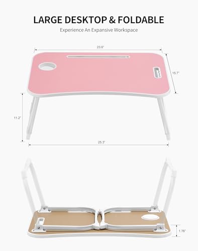 Spacious Desktop: Unfolded, this table measures 23.6×15.7×11.2 inches, offering a generous surface. Accommodating large-sized laptops, a mouse, notebooks, tablet, cup, cellphone, and more, it provides ample space for diverse needs. The spacious leg area caters to individuals of varying body sizes and age groups.