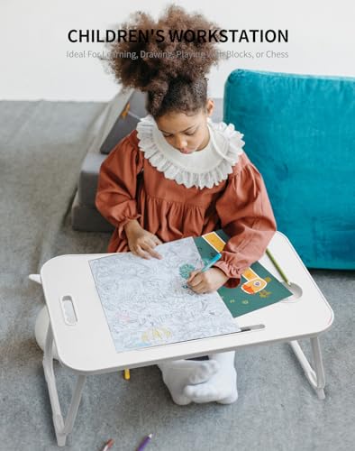 Best foldable ZEAPTAC Laptop Bed Desk, Foldable Lap Table, Portable Study Table, Laptop Stand with Cup Holder & Tablet Slot & Lifting Handle for Working Writing Drawing & Eating – ‌Warm White : Ultimate Buying Guide